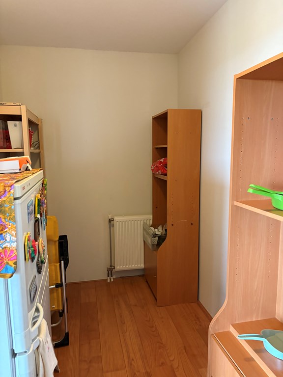 A big plus is the large indoor storage room right next to the kitchen and the lovely loggia, where you can enjoy the sun. In addition, the building has a lift and there is a bicycle storage room downstairs, which further enhances the comfort of living.