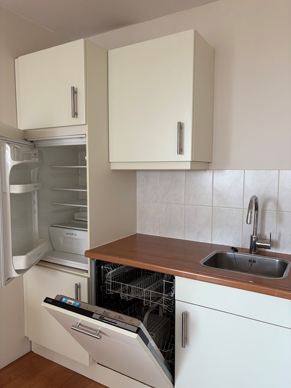 The kitchen is cleverly laid out and equipped with all the necessary appliances. Both bedrooms are spacious and light, ideal as a master bedroom and study or guest room. The bathroom is neat and functional with a shower and a bath.